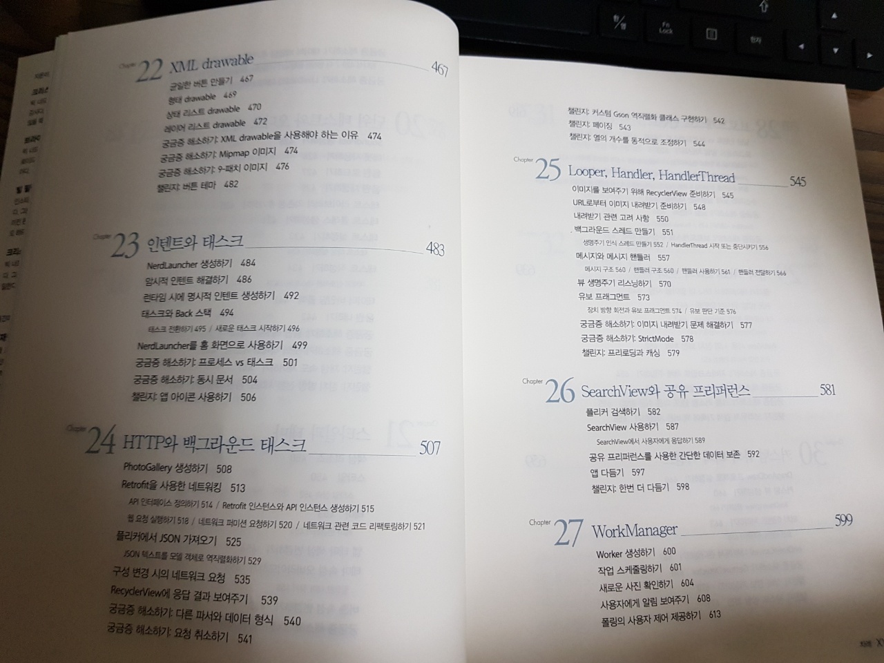 직접 가서 수십권의 안드로이드 저서를 훑어보며 목차와 내용을 살펴봤는데요