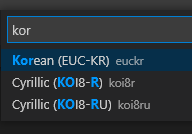 - "kor"을 검색해서 나오는 EUC-KR 클릭
